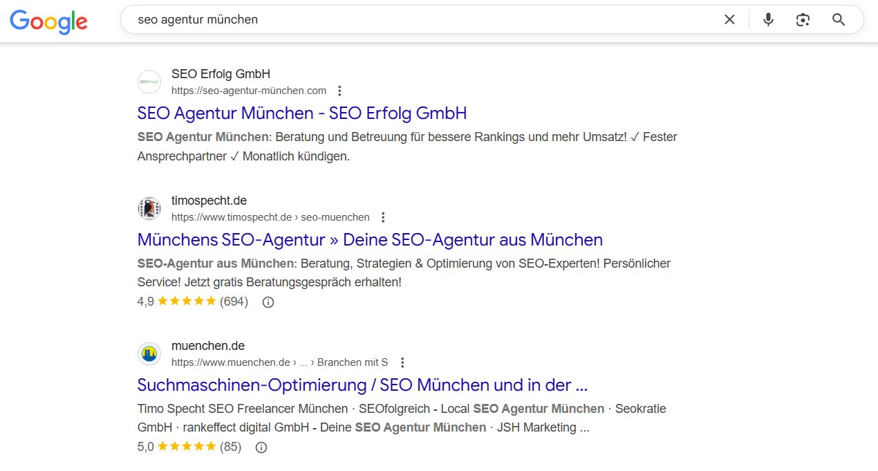 Unser SEO-Team aus München hilft regionalen Firmen und Online-Shops zu besseren Rankings, mehr Klicks, Anfragen und Umsatz.
